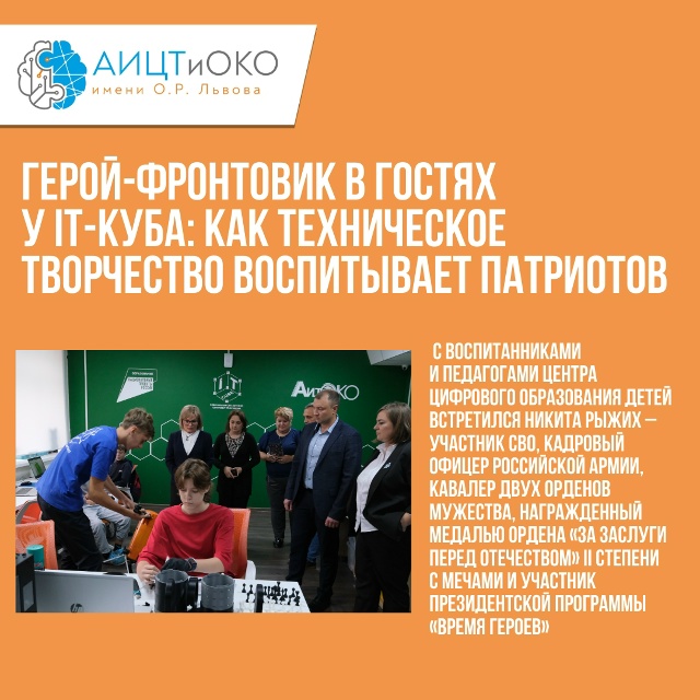 Центр цифрового образования IT-Куб.Барнаул стал площадкой для значимого события в сфере детского технического творчества и патриотического воспитания. С воспитанниками и педагогами учреждения встретился участник СВО, кадровый офицер российской армии Никита