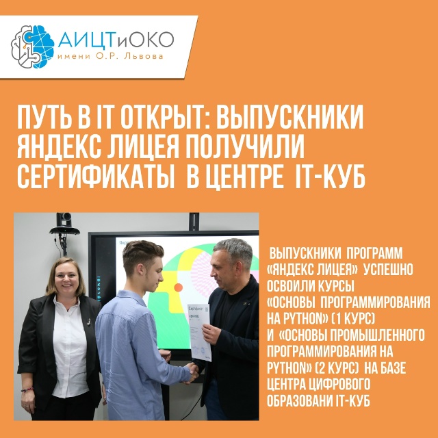 Путь в IT открыт: выпускники Яндекс лицея получили сертификаты в «IT-Куб.Барнаул»Путь в IT открыт: выпускники Яндекс лицея получили сертификаты в «IT-Куб.Барнаул»