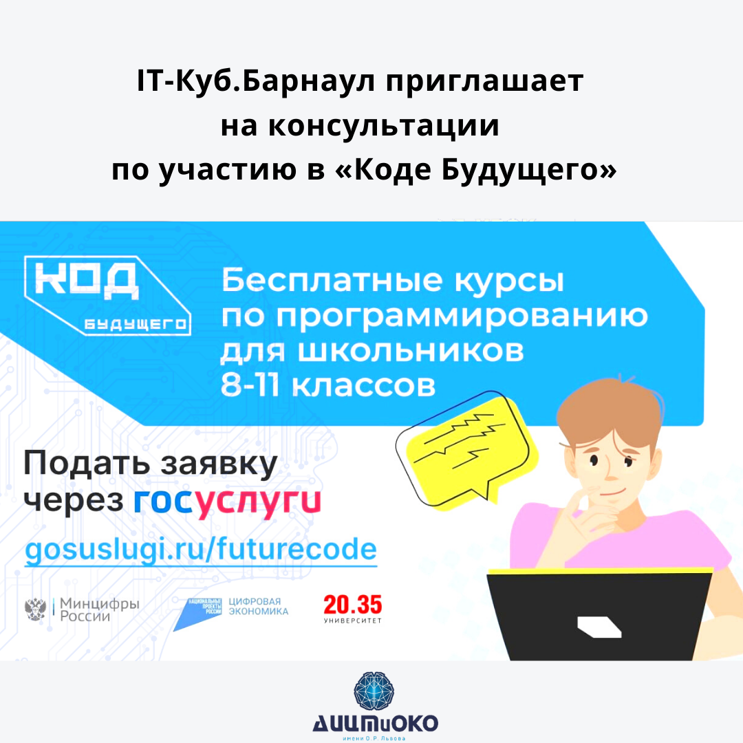 Центр цифрового образования детей IT-КУб .Барнаул приглашает участвовать школьников в проекте  «Коде Будущего»