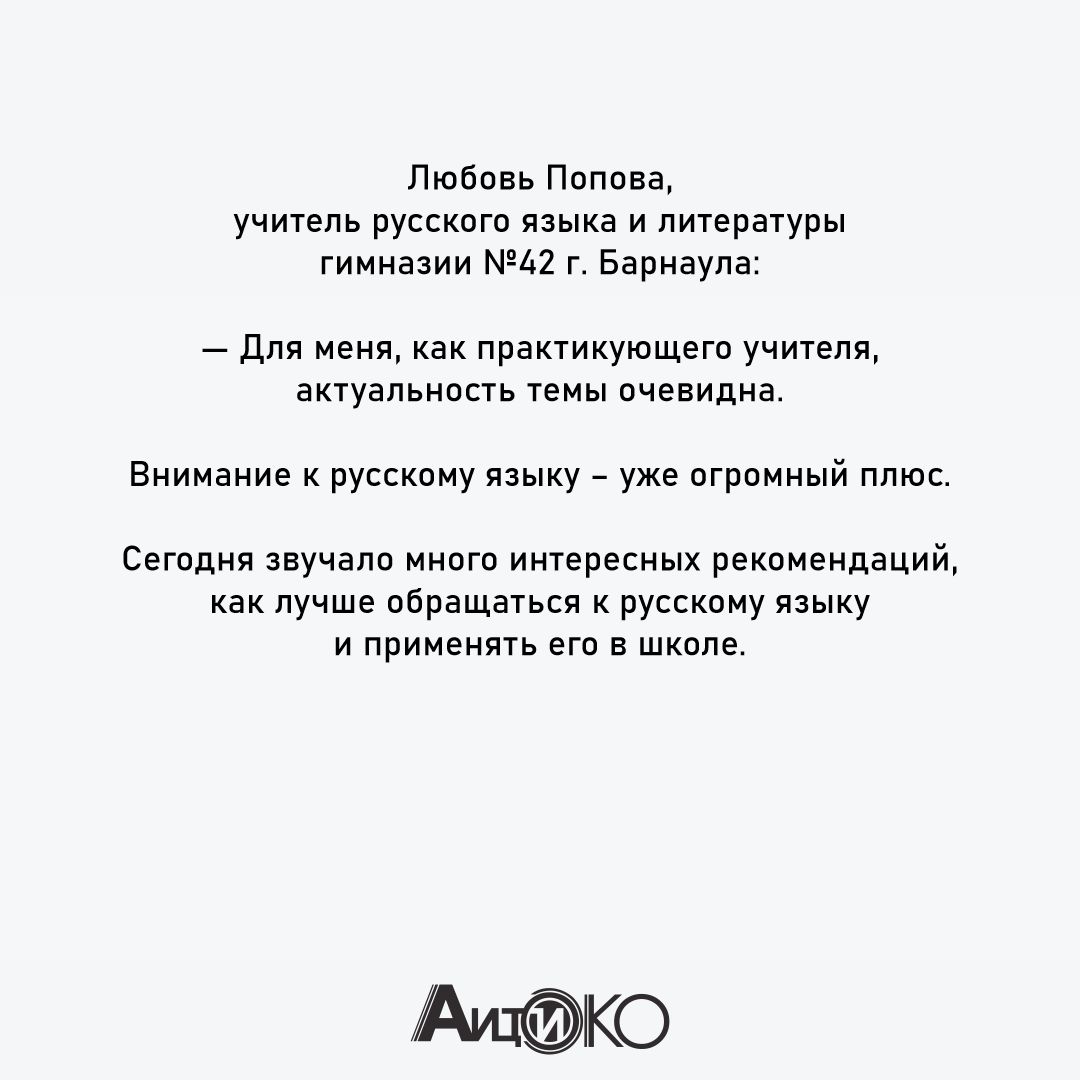 Любовь Попова, учитель русского языка и литературы гимназии №42 г. Барнаула: