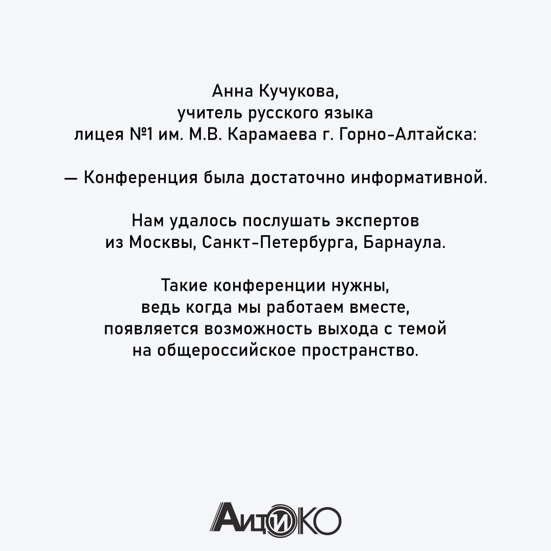 Анна Кучукова, учитель русского языка лицея №1 им. М.В. Карамаева г. Горно-Алтайска: